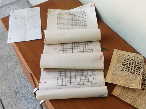 Handmade grids by Admiral Katari on the left, print versions of crosswords on the right.